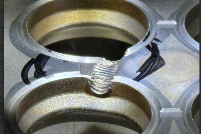 内容 ボルトを挟み込み潰れてしまった型をレーザー溶接肉盛りし彫刻機で修正しました